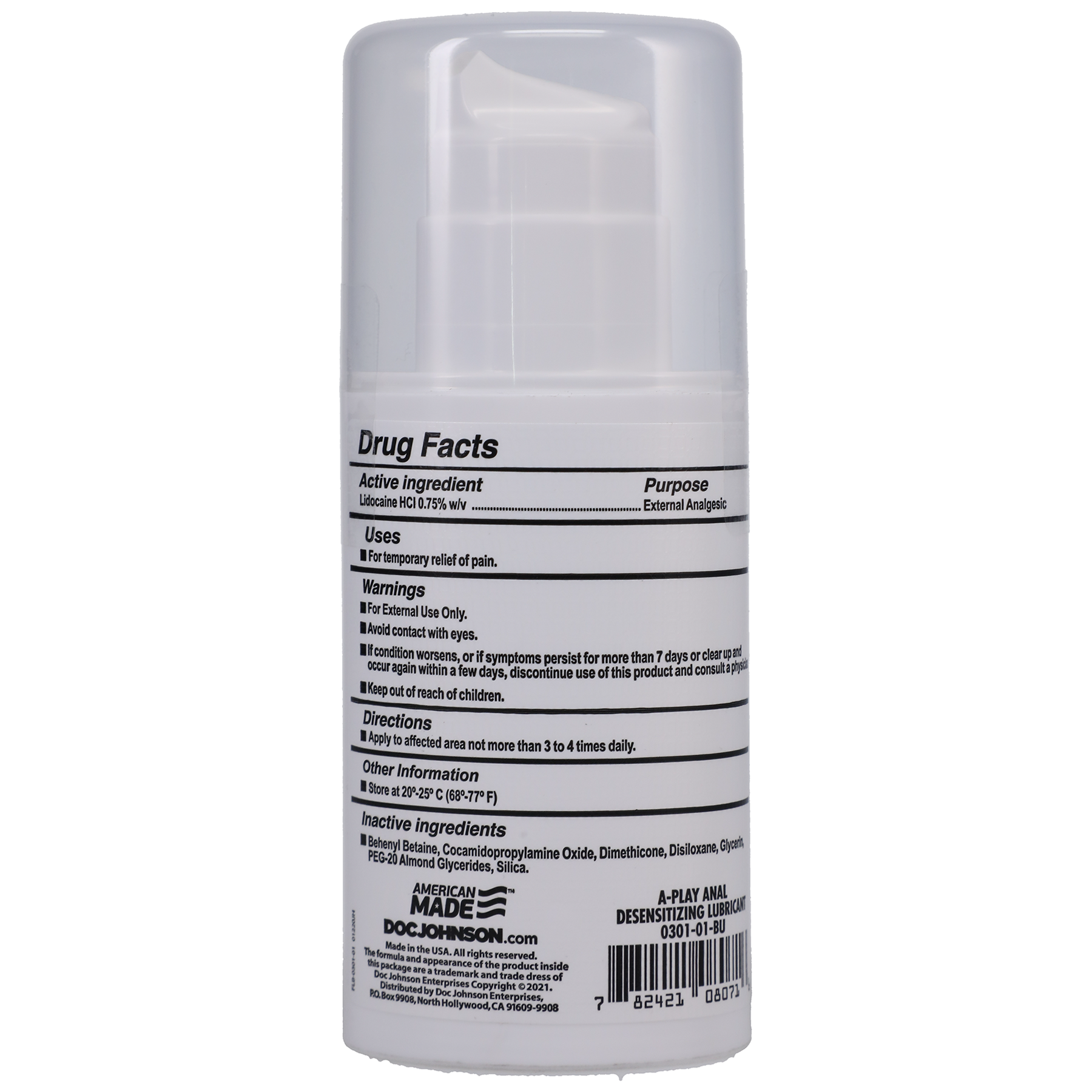La penetración anal debe ser excitante y sensual, no incómoda. Por eso Doc Johnson ofrece el lubricante desensibilizante A-Play, un analgésico anal, para desensibilizar los delicados tejidos rectales y prepararlos para lo que está por venir.