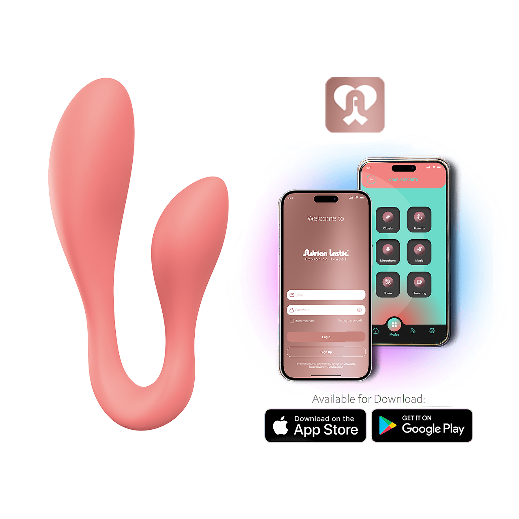 Doble sensación gracias a sus dos potentes motores. Innovador vibrador con aplicación, doble estimulación. Con tacto sedoso, su forma ergonómica permite triplicar el placer, para disfrutar solo o en pareja.