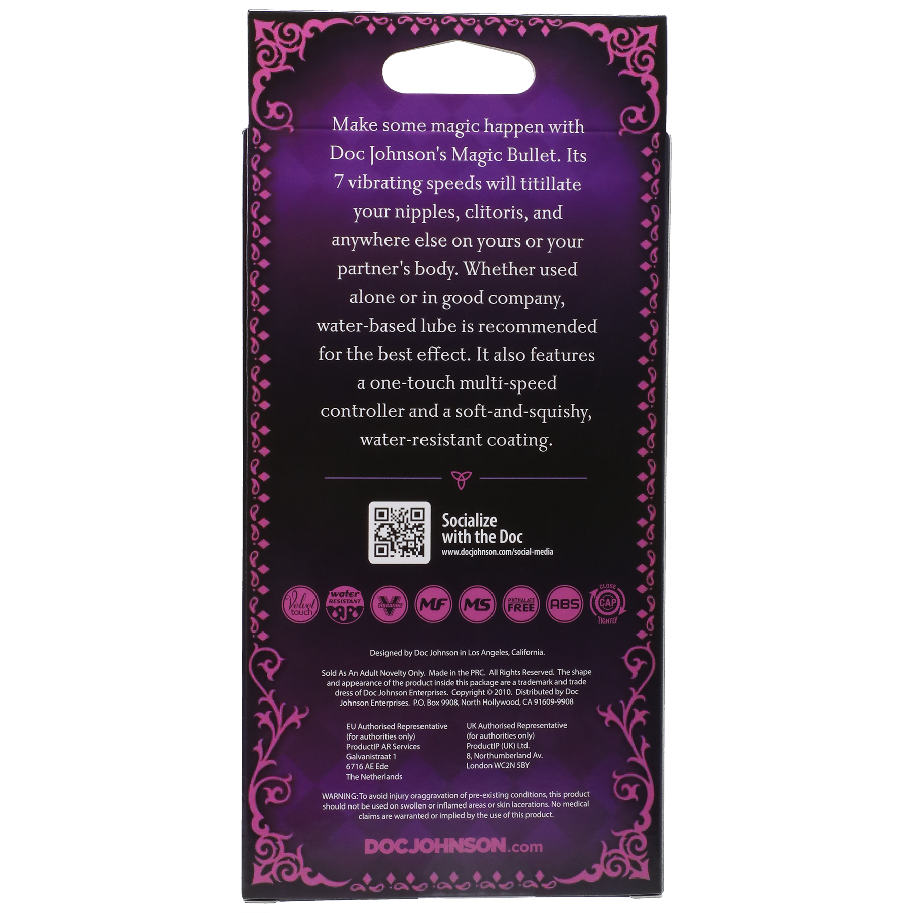 Haz magia con la Bala Mágica de Doc Johnson. Sus 7 velocidades de vibración excitarán tus pezones, clítoris y cualquier otra parte de tu cuerpo o del de tu pareja. Tanto si se utiliza solo como en buena compañía, se recomienda utilizar lubricante a base de agua para obtener el mejor efecto. Además, cuenta con un mando multivelocidad de un solo toque y un recubrimiento suave y sedoso resistente al agua.