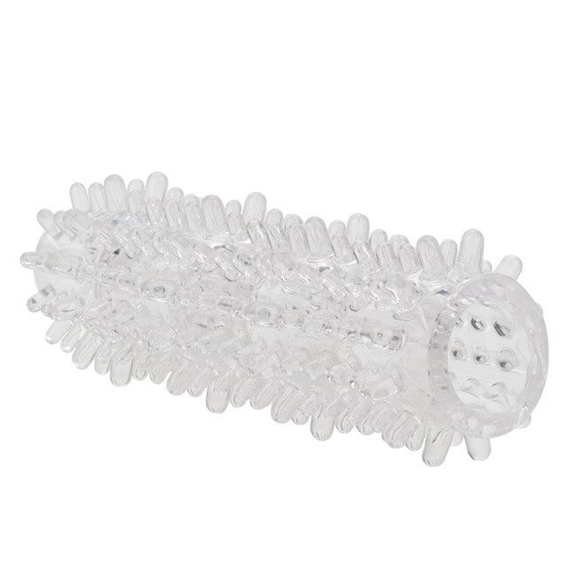 La extensión translúcida está hecha de TPE ultra suave y súper elástico, sin perfume y sin ftalatos, y tiene una textura sensual con cosquilleos y provocadores tentadores en ambos lados. La extensión flexible mide un generoso 7,75” x 2,25”/19,75 cm x 5,75 cm y se corta fácilmente para adaptarse a tus proporciones personales. Para una mayor estimulación y un disfrute máximo, la funda es reversible.